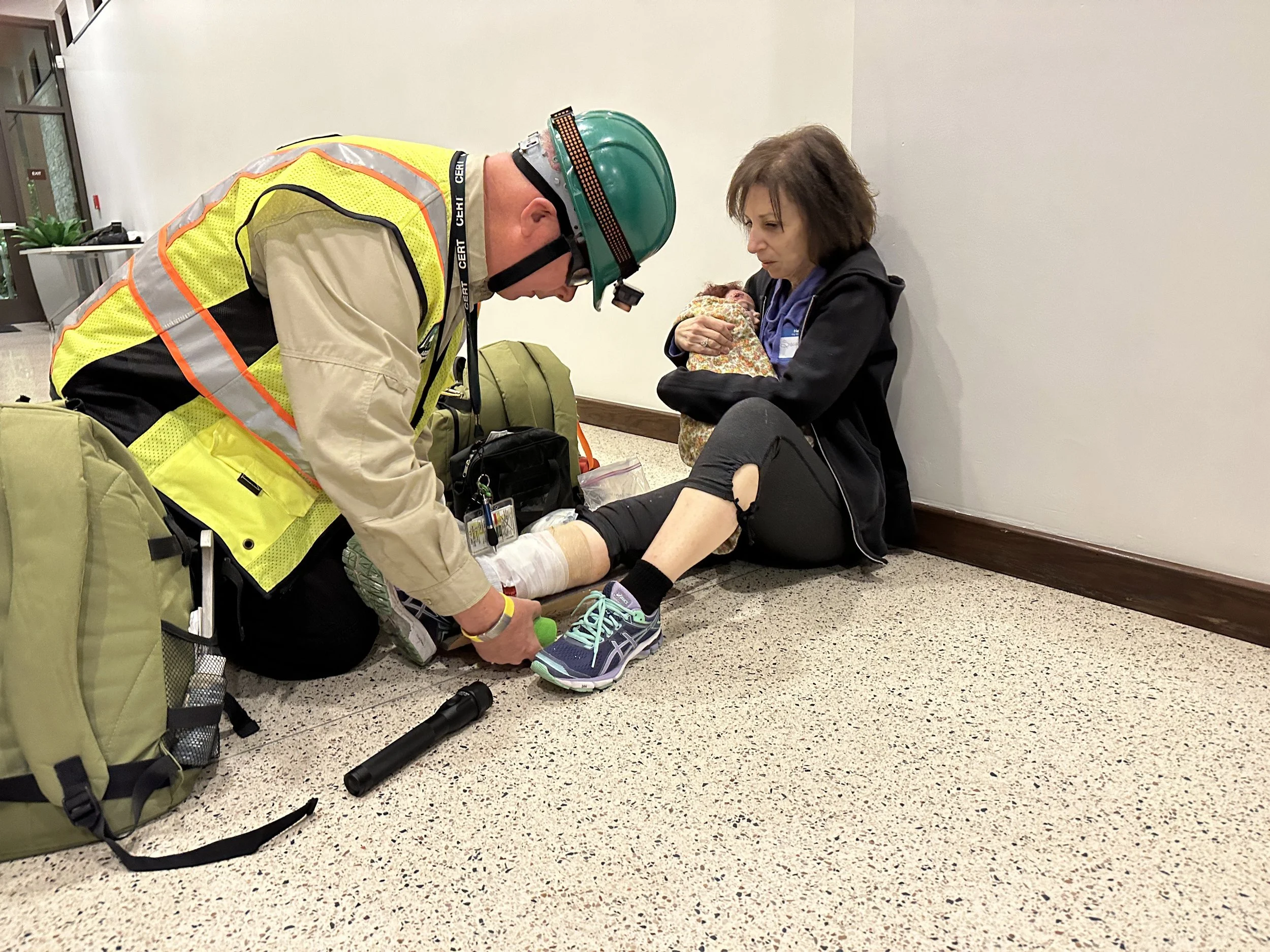 CERT members set up a triage and treatment tent at Forest Cove Park.